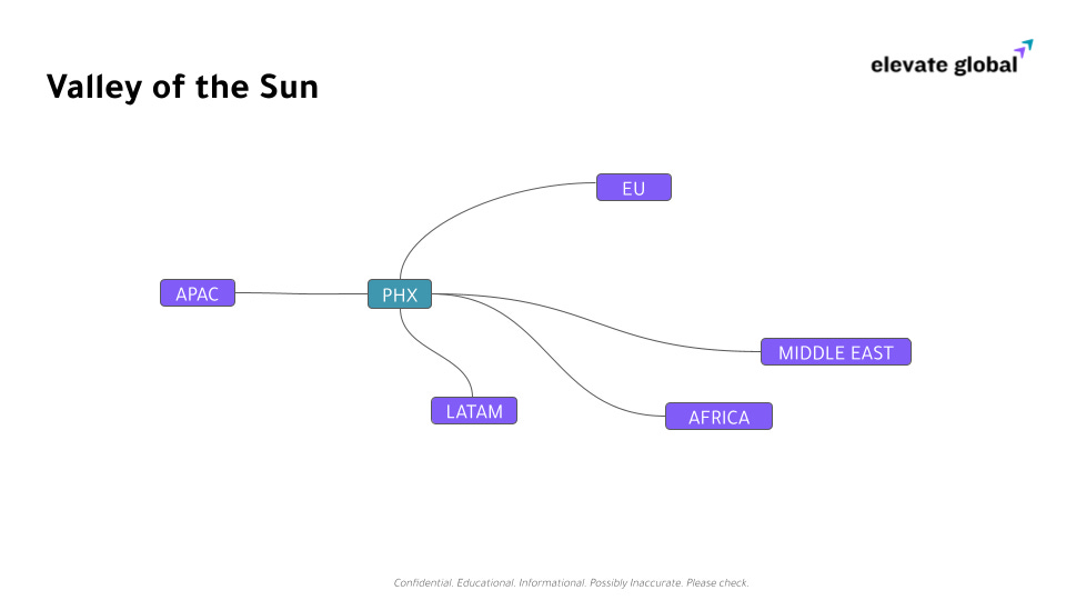 As bodies need a heart, so ventures need a hub. The Valley of the Sun offers warmth and growth; human limitations require focus in terms of destinations.